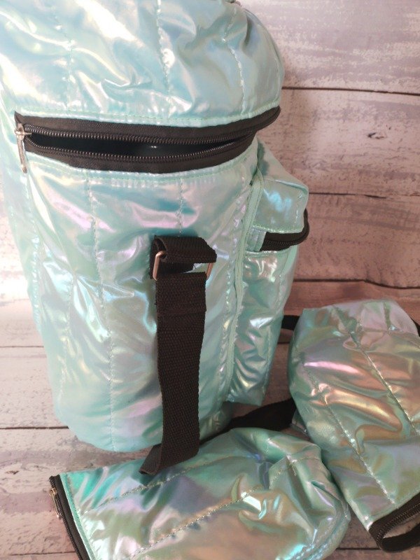 Bolso matero amplio con accesorios para yerba y azúcar y portamate.